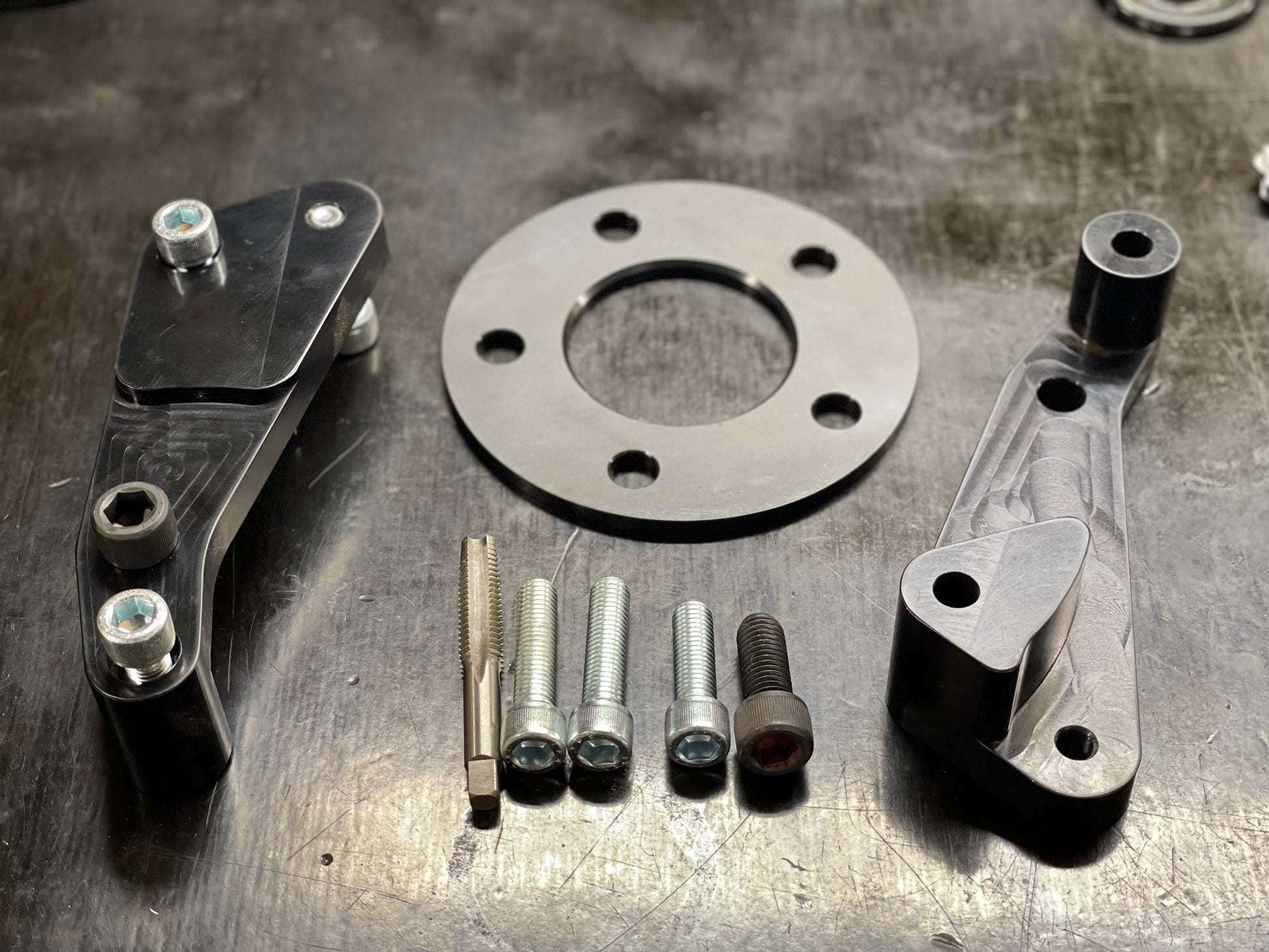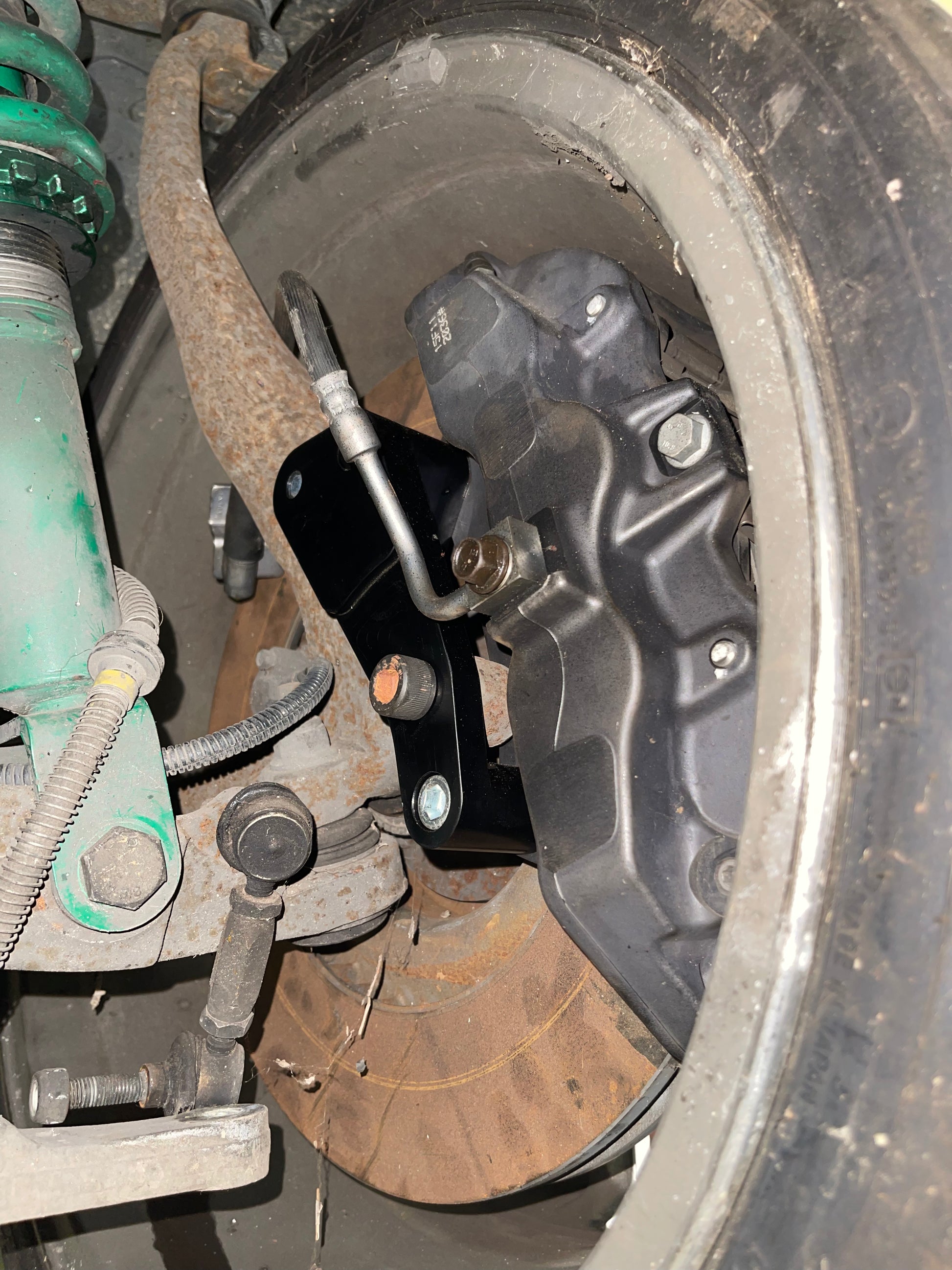Comes with all bolts, mounts, braided brake lines and rotor spacers required. Note this kit does require tapping the lower brake mount hole on the stub axle with the supplied M14 tap.