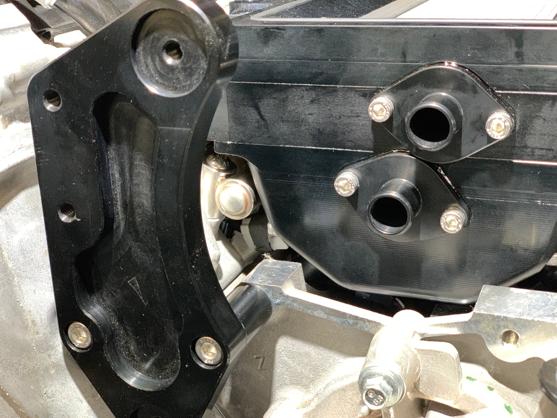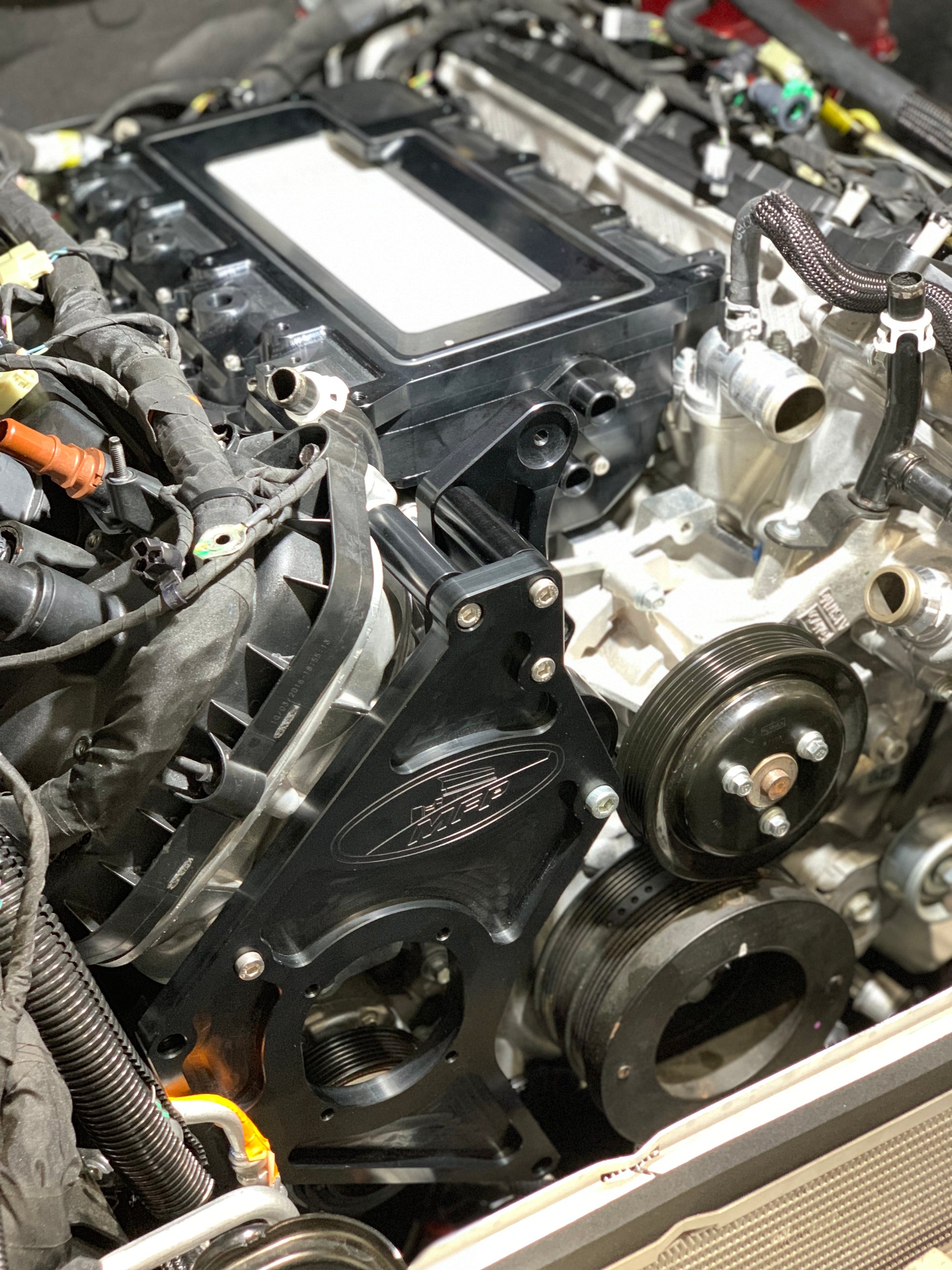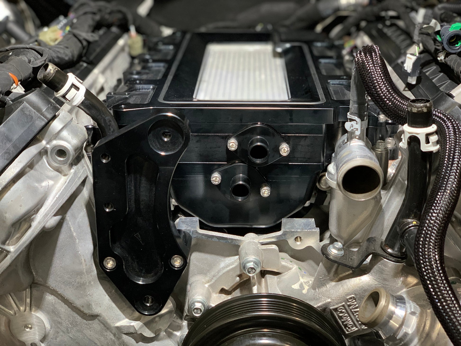 These Billet Coyote Manifolds fit all generations of Coyote engine including DI engine allowing you to mount any GT500 compatible supercharger to your Coyote Mustang or Falcon. We love fitting a big Whipple to Everything over here and this allows that with ease. Featuring all Billet 6061 construction, made in 3 pieces which will allow your porter to go to town and match intake ports on your heads. Complete with Billet -8 Fuel rails and a PWR intercooler core with our own Billet end tanks. Our cores are internally mounted on Phenolic insulators and have a floating design held in place with shoulder screws and Bellevue washers.