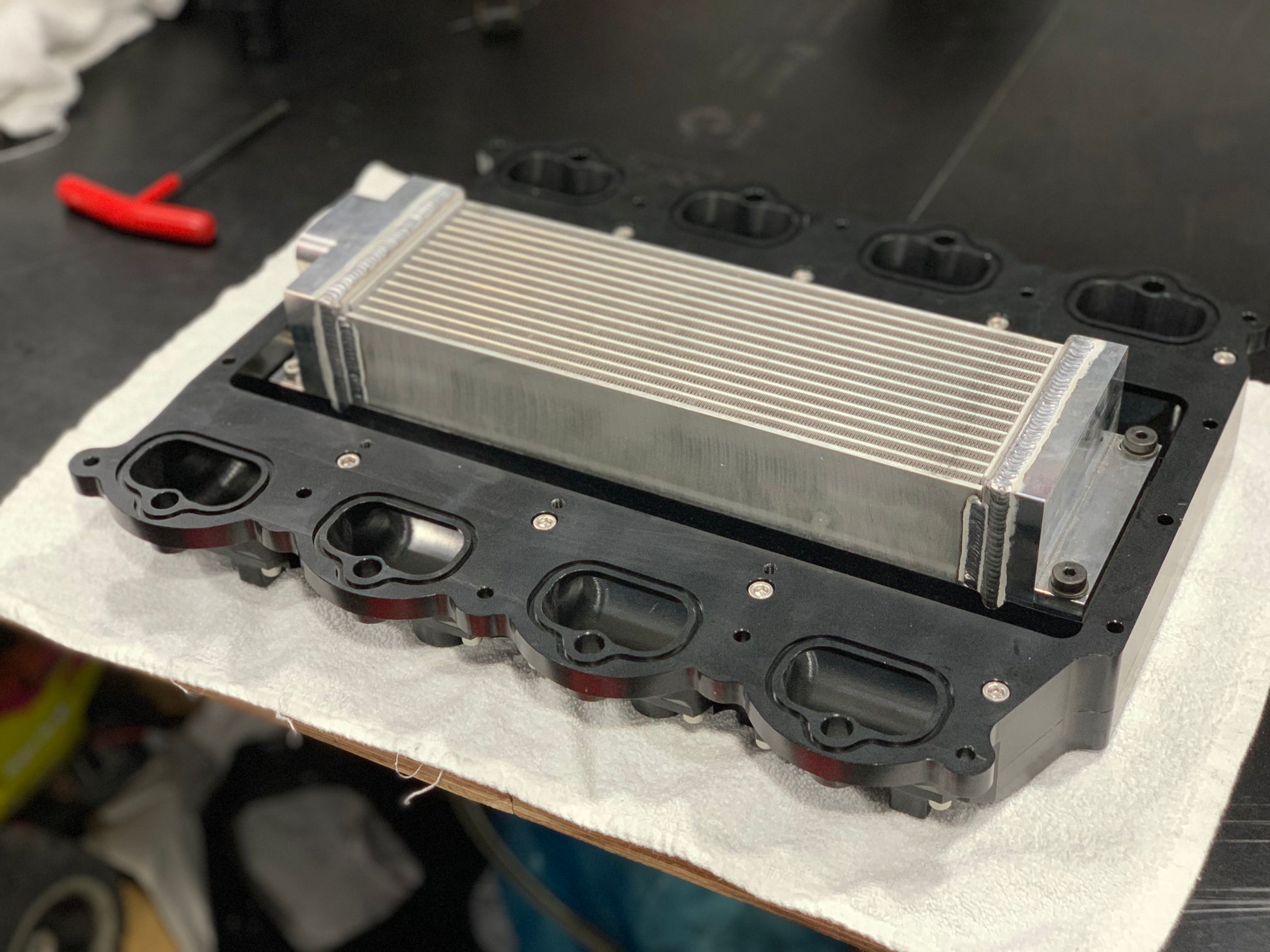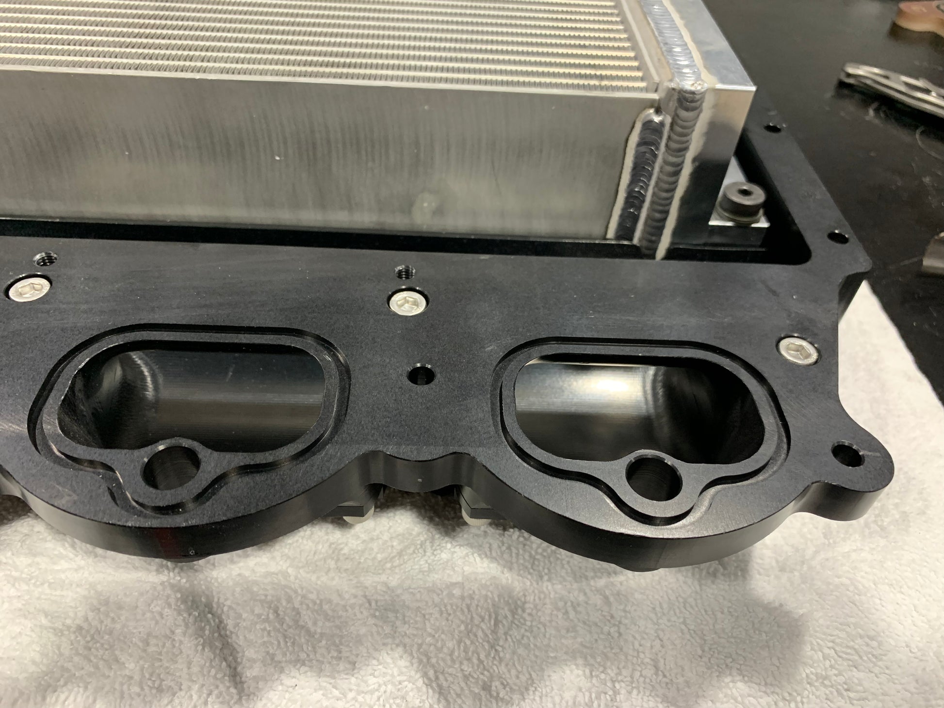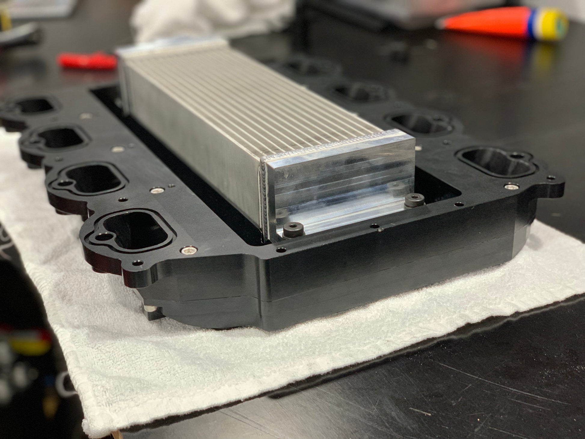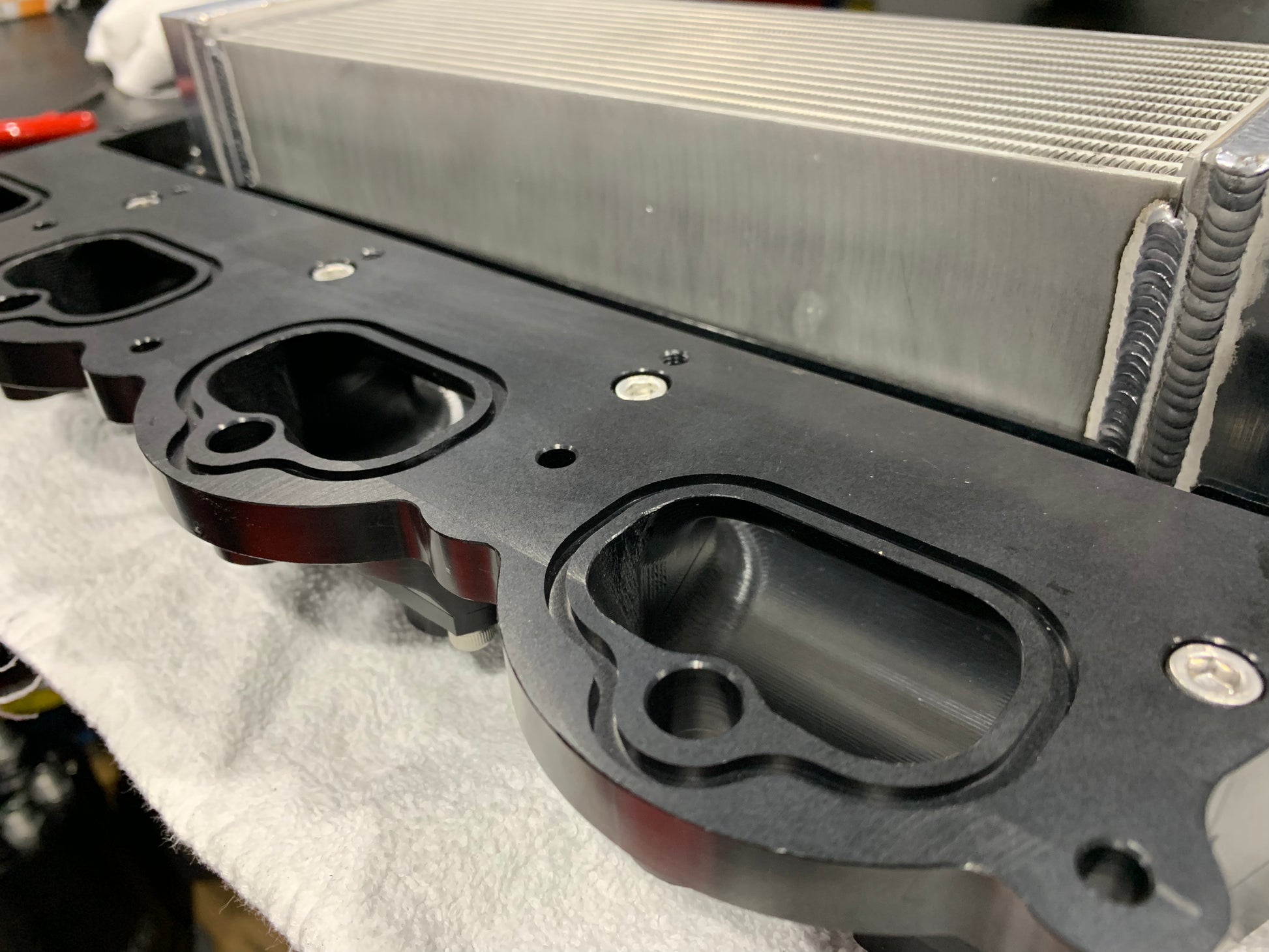These Billet Coyote Manifolds fit all generations of Coyote engine including DI engine allowing you to mount any GT500 compatible supercharger to your Coyote Mustang or Falcon. We love fitting a big Whipple to Everything over here and this allows that with ease. Featuring all Billet 6061 construction, made in 3 pieces which will allow your porter to go to town and match intake ports on your heads. Complete with Billet -8 Fuel rails and a PWR intercooler core with our own Billet end tanks. Our cores are internally mounted on Phenolic insulators and have a floating design held in place with shoulder screws and Bellevue washers.
