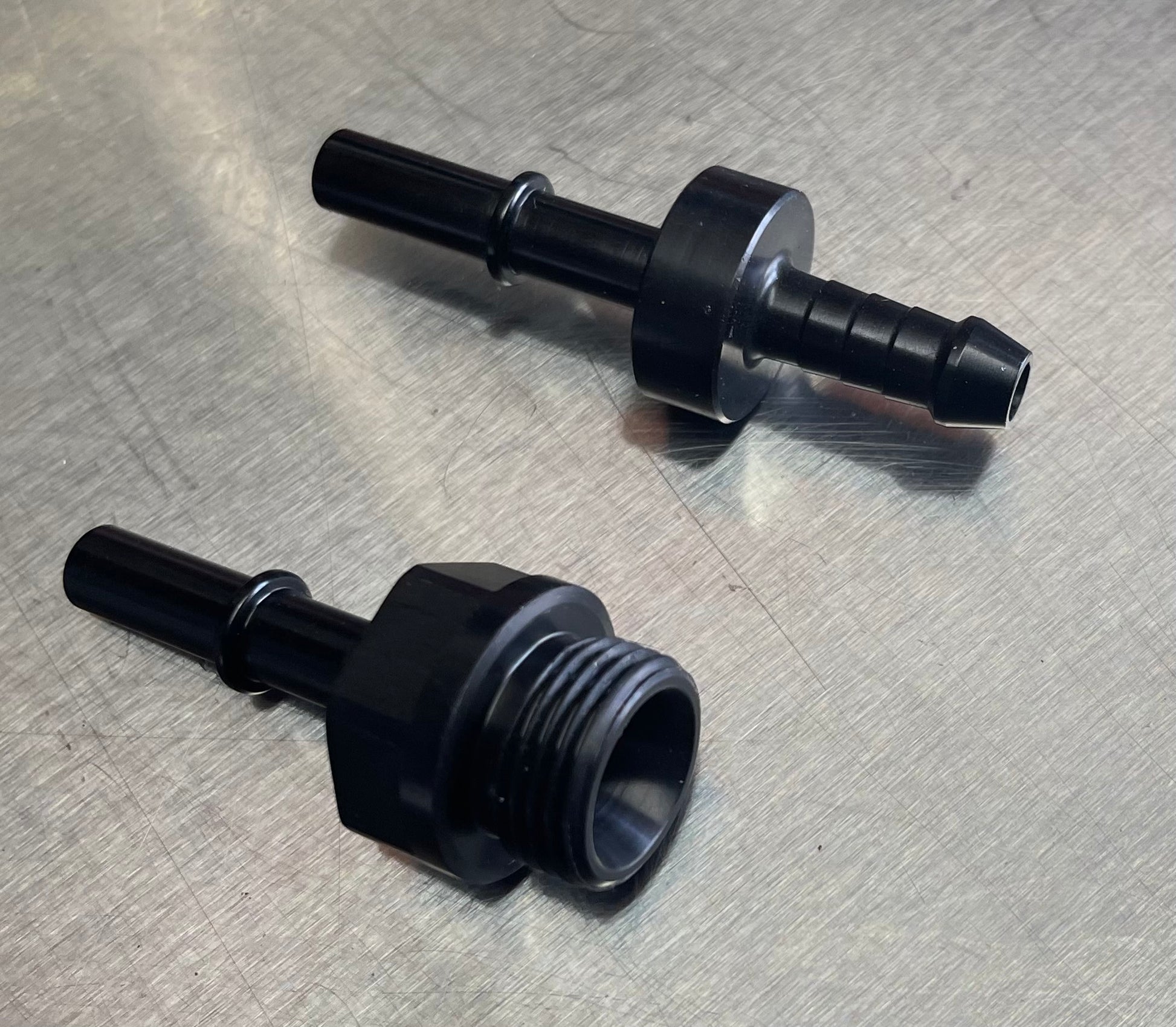 These fuel fittings are for those people that haven't yet put in a full fuel system, but have fitted upgraded billet fuel rails and are still running the factory fuel lines up the car. These fittings will attach directly to the factory lines and allow you to connect to -8 O ring fuel rails and back to the return line on custom rail setups.